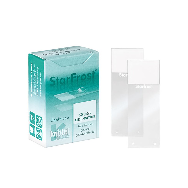 Portaobjetos para microscopio Adhesivo Silanizado Extra StarFrost®. Marca MEDITE Fabricación Alemana.